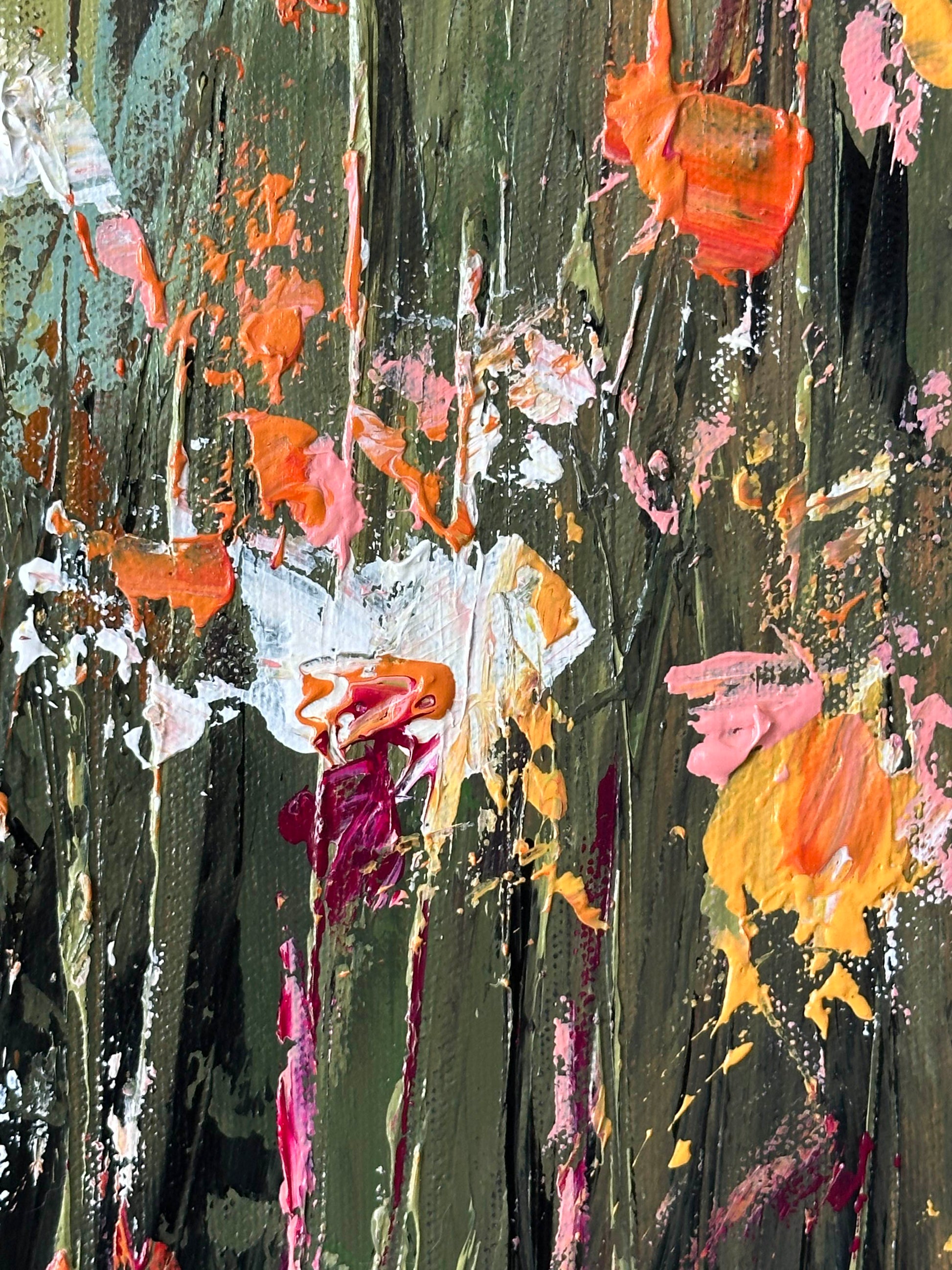 This work reflects my experience observing open land and seasonal change. I worked with layered acrylic and heavy gesture to create movement through the grasses and flowers, while keeping the horizon calm and grounded.