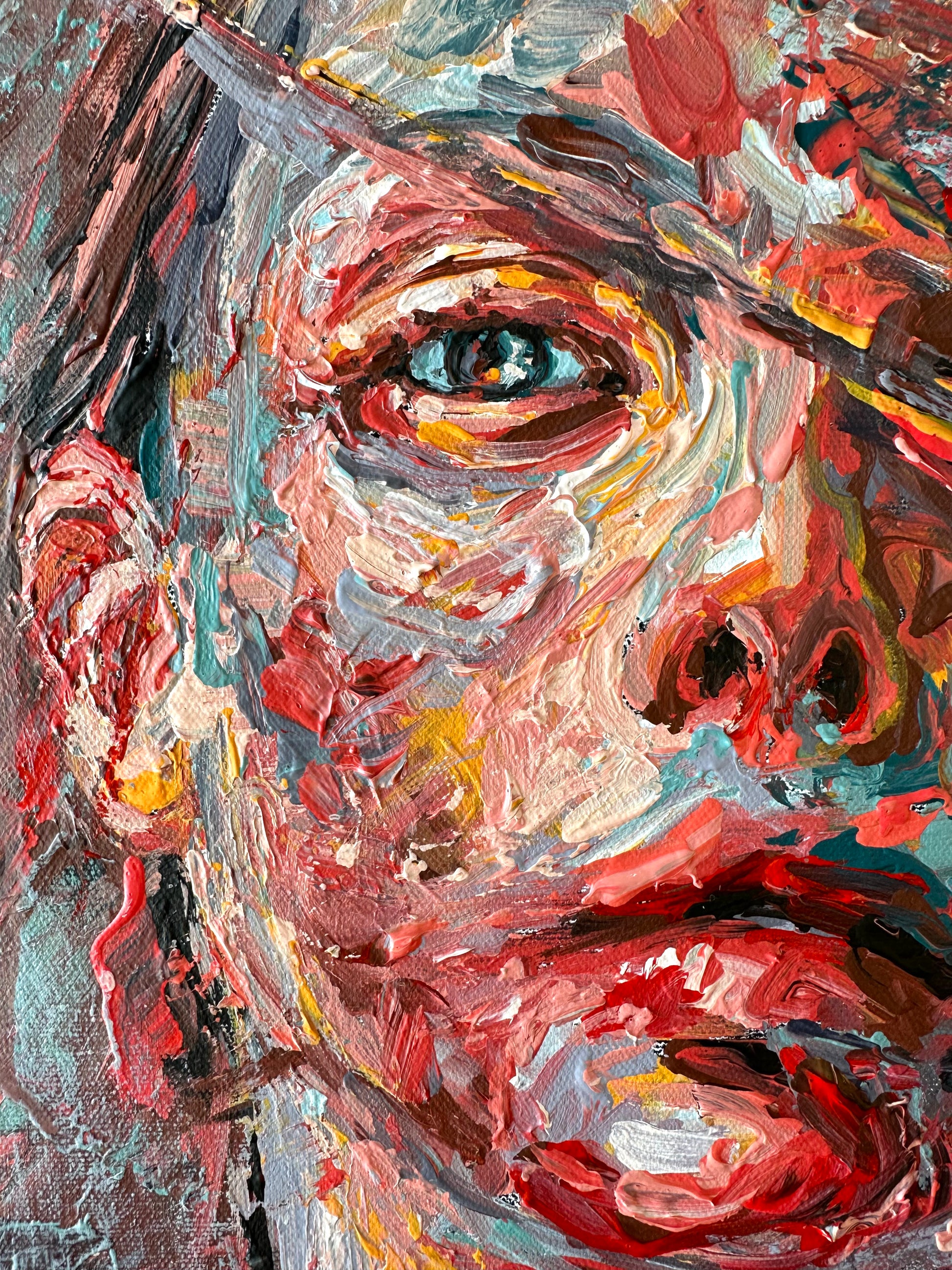 Esta pintura original, intitulada Conjunction , captura a energia celestial de Vênus e Saturno em um alinhamento cósmico. Apresentando uma mulher adornada com Saturno como sua coroa, esta obra de arte simboliza o equilíbrio entre beleza e disciplina, inspiração e estrutura. Com traços dinâmicos de espátula e uma interação onírica de cores, Conjunction incorpora o poder transformador de romper limitações e abraçar o crescimento.
