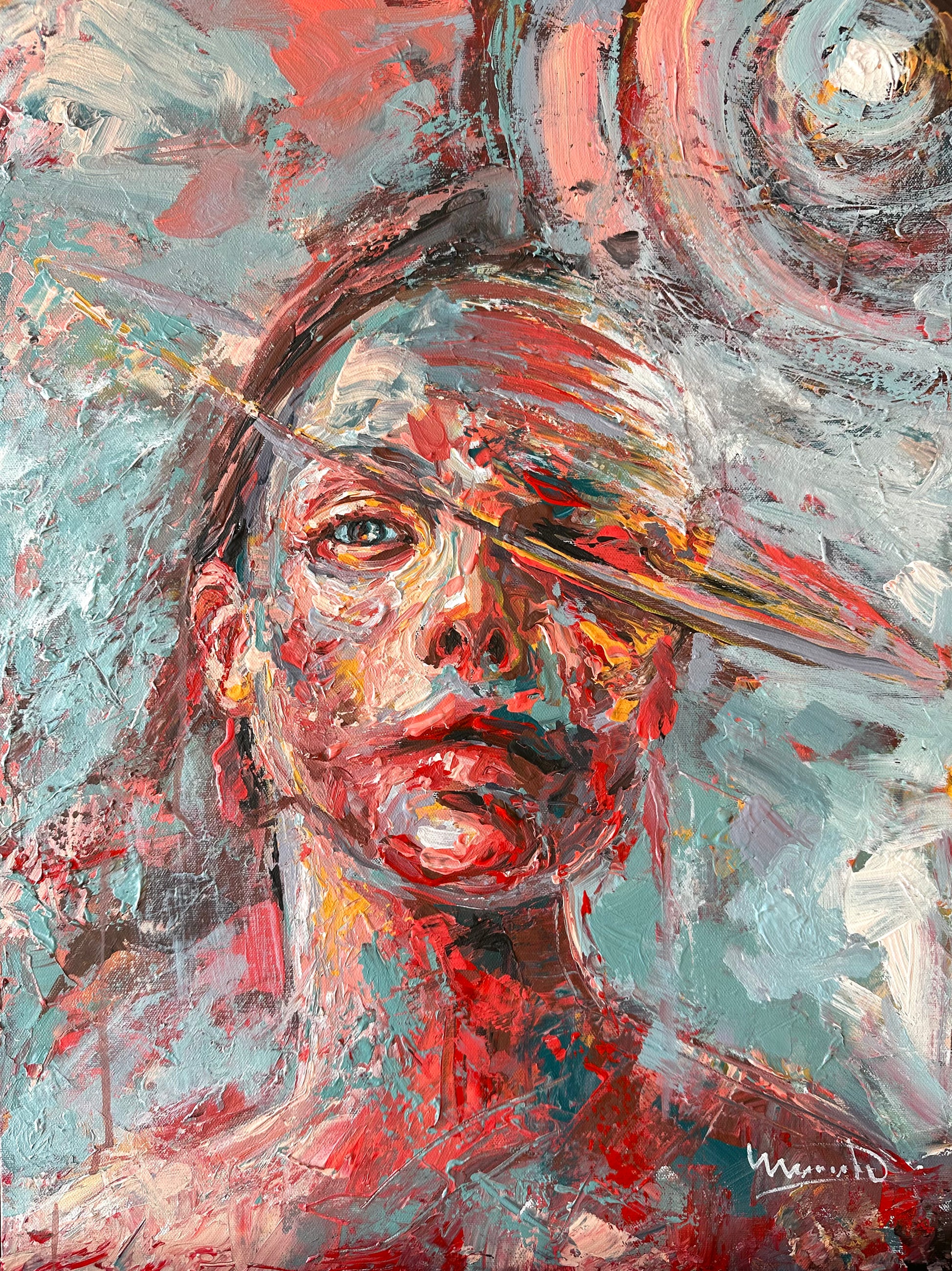 As camadas texturizadas e os tons vibrantes evocam a intensidade elevada dos sonhos e os desafios que nos moldam, convidando os espectadores a se conectarem com o ritmo universal de transformação e libertação.