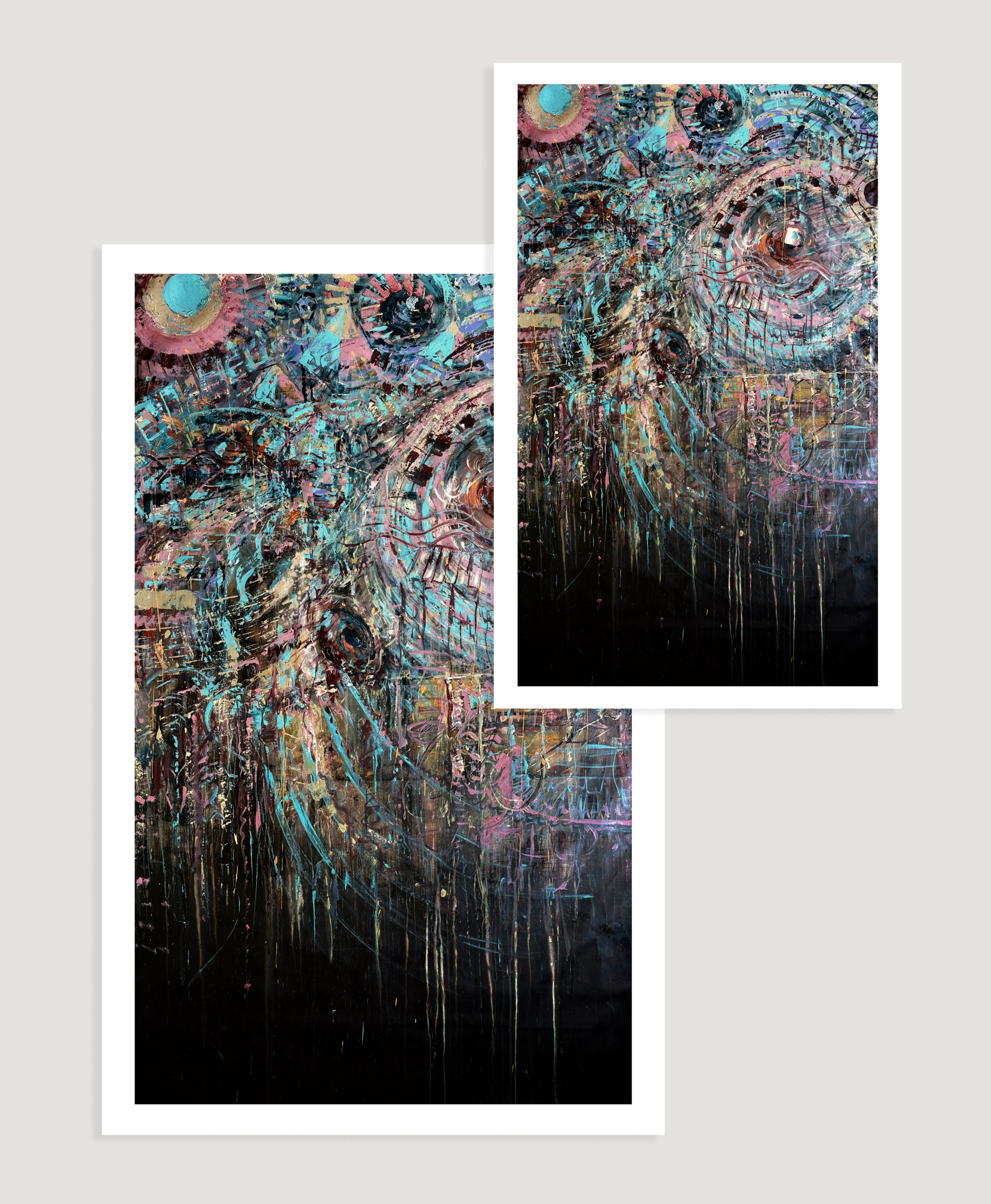 "O Som" é uma pintura abstrata criada durante um profundo estado meditativo enquanto ouvia minha própria música e frequências de alta vibração. Minha intenção foi traduzir a experiência auditiva em arte visual, usando cores e texturas para materializar uma dimensão que pode ser sentida e ouvida. Esta peça representa a harmonia e ressonância do som manifestada através da pintura.